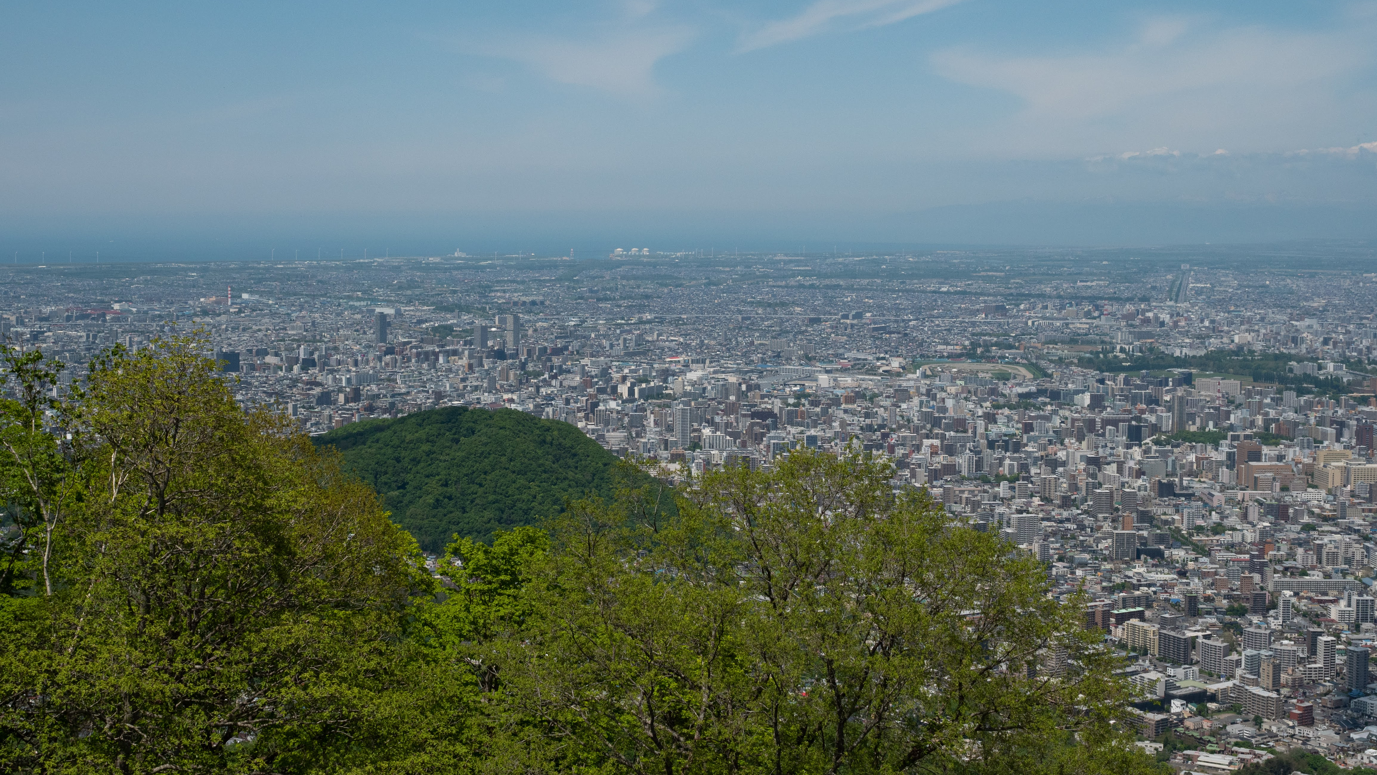 藻岩山頂からの一コマですが、木々の向こうのこんもりしたのが円山です。